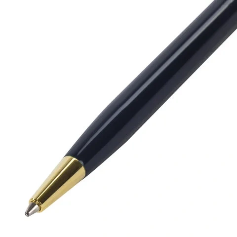 Корпус ручки темно-синего цвета выполнен из латуни, детали корпуса золотого цвета. Синий цвет чернил, длина стержня составляет 98 мм, а диаметр пишущего узла - 0,7 мм. Поставляется в индивидуальном подарочном футляре.