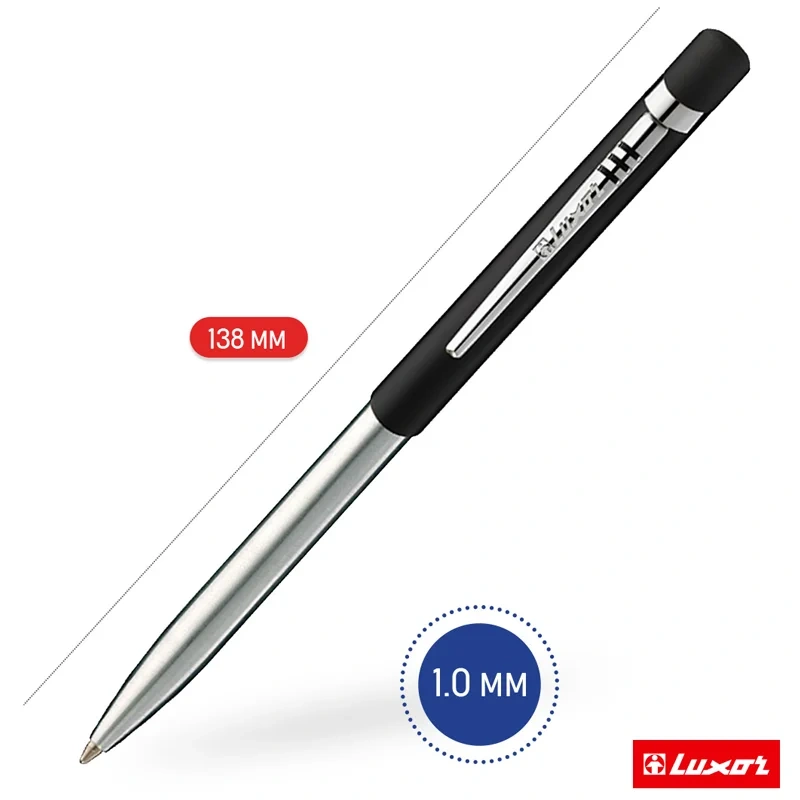 Ручка шариковая Luxor 'Gemini' синяя, 1,0мм, корпус черный/хром, кнопочный механизм