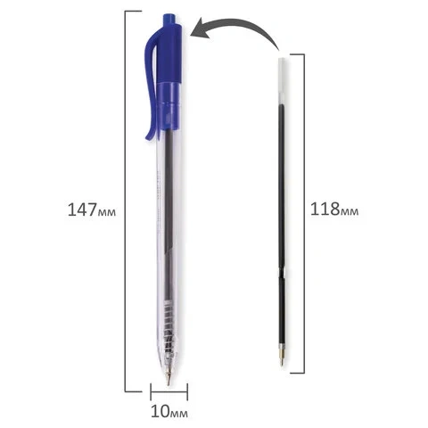 Шариковая ручка автоматическая Brauberg Extra Glide R синяя, 0.35мм, прозрачный корпус
