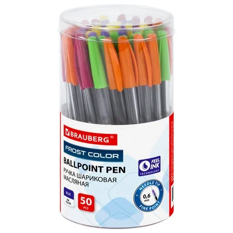 Ручка шариковая масляная BRAUBERG 'Frost Color', СИНЯЯ, ассорти, узел 0,6 мм, линия письма 0,3 мм, 1