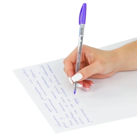 Шариковая ручка с прозрачным корпусом снабжена синими чернилами на масляной основе. Диаметр пишущего узла 0,6 мм создает тонкую линию письма, равную 0,3 мм. Ручка обладает увеличенной длиной письма более 1000 м, что обеспечивает более длительный срок службы по сравнению с другими ручками. Детали синего цвета, выполненные в цвет чернил, соответствуют офисному стилю. Удобный стакан для размещения ручек в розничном магазине.