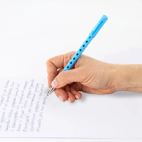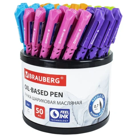 Шариковая ручка масляная имеет необычный перфорированный корпус ассорти цветов: оранжевый, зеленый, голубой, розовый и фиолетовый. Снабжена чернилами на масляной основе, обеспечивающими непревзойденно легкое и мягкое письмо. Еще одним преимуществом данной модели является наличие сменного стержня, что делает её экономически привлекательной. Длина стержня составляет 130 мм с игольчатым наконечником, обеспечивающим равномерный расход чернил. Диаметр пишущего узла 0,7 мм создает тонкую линию письма, равную 0,35 мм. Цвет чернил - синий. Удобный шоу-бокс для розничной торговли!
