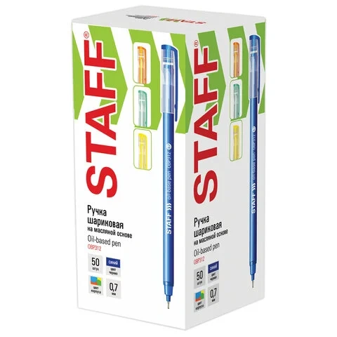 Шариковая ручка Staff Basic OBP-312 синяя, 0.35мм, корпус ассорти, одноразовая