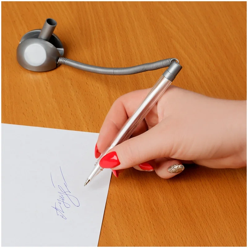 Настольная шариковая ручка OfficeSpace Reception на подставке – это идеальный инструмент для работы. Подставка с регулируемым углом наклона позволяет использовать ручку в любом положении. Подставка фиксируется на ровной поверхности с помощью клейкого основания. Отлично подходит для мест с высокой проходимостью: стойки регистрации, банки, ресепшен, офисные помещения. Диаметр пишущего узла 0,7 мм, благодаря чему ручка подходит для любого стиля письма.