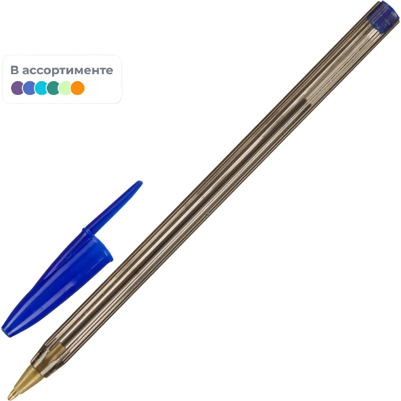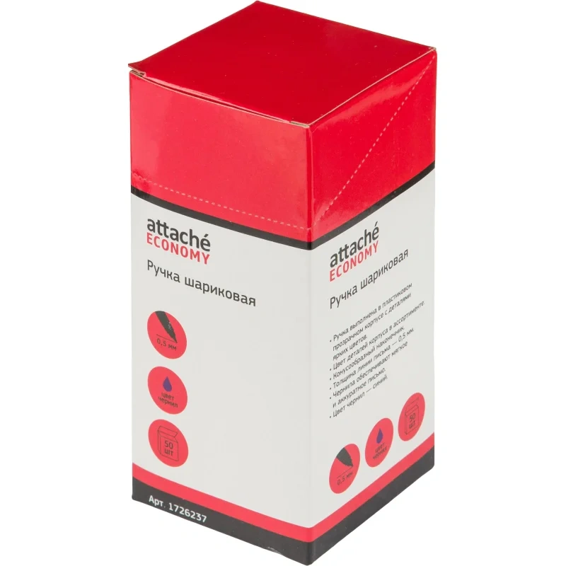 Ручка шариковая неавтомат. Attache Economy линия 0,5 мм, синяя, в асс Ручка шариковая Attache Economy синего цвета. Модель представлена в прозрачном круглом пластиковом корпусе с деталями ярких цветов. Комплектуется стержнем со стандартным наконечником. Возможность смены стержня отсутствует. Длина стержня 122 мм. Диаметр пишущего узла 0.7 мм позволяет наносить линии толщиной 0.5 мм. Заправлена чернилами синего цвета, которые обеспечивают мягкое и аккуратное письмо. Внимание. Товар поставляется в нескольких цветовых решениях (без возможности выбора).