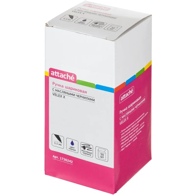 Ручка шариковая неавтомат. Attache Velex X 0,5мм син,масл,оранж.кор Ручка шариковая Attache Velex X, синего цвета. Модель представлена в классическом пластиковом корпусе оранжевого цвета. Комплектуется стержнем с игольчатым наконечником. Длина стержня 139 мм. Диаметр пишущего узла 0,7 мм позволяет наносить тонкие линии толщиной 0,5 мм. Заправлена масляными чернилами синего цвета, которые обеспечивают мягкое и аккуратное письмо.
