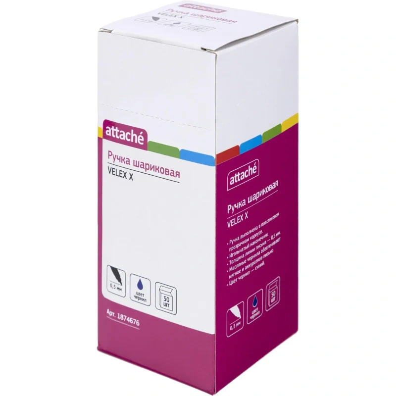 Ручка шариковая Выбор есть (Attache) Velex X представлена в классическом пластиковом прозрачном корпусе. Комплектуется стержнем с игольчатым наконечником. Длина стержня 139 мм. Диаметр пишущего узла 0.7 мм позволяет наносить тонкие линии толщиной 0.5 мм. Заправлена масляными чернилами синего цвета, которые обеспечивают мягкое и аккуратное письмо.