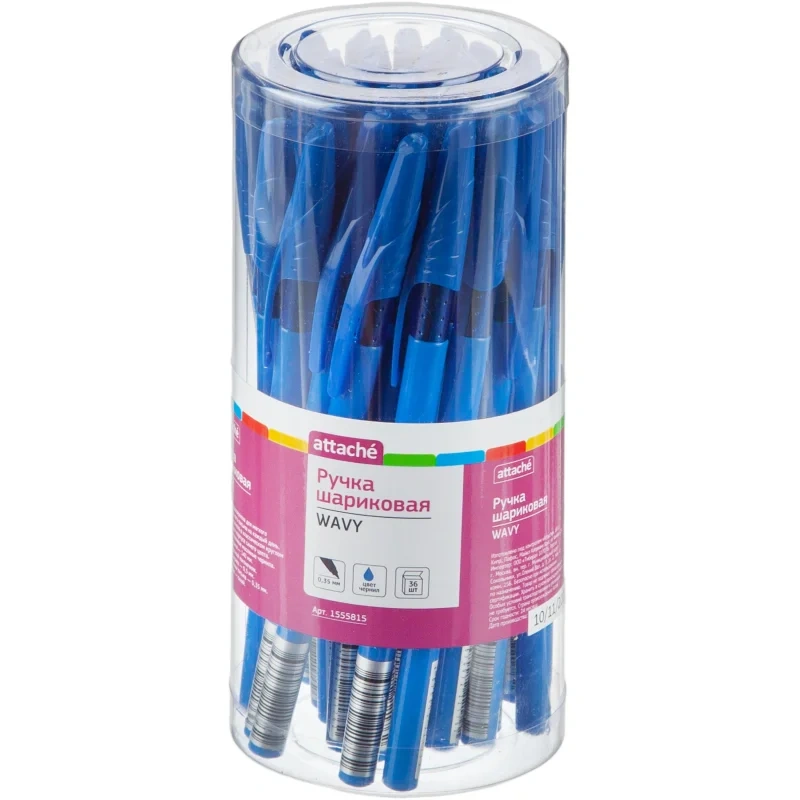 Ручка шариковая Attache Wavy — отличный вариант для ежедневного использования в офисе или дома! Модель выполнена в классическом круглом пластиковом корпусе синего цвета. Сменный стержень заправлен синими масляными чернилами, снабжен игольчатым наконечником диаметром 0.5 мм, который обеспечивает тонкую линию письма 0.35 мм. Длина стержня — 140 мм. Ручка обеспечивает легкое и мягкое письмо, яркие и насыщенные линии. Ручка шариковая Attache Wavy — это предмет, который всегда должен быть под рукой!