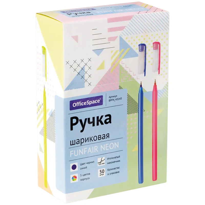 Ручка шариковая Officespace Funfair neon синяя, 0.6мм, корпус ассорти, одноразовая