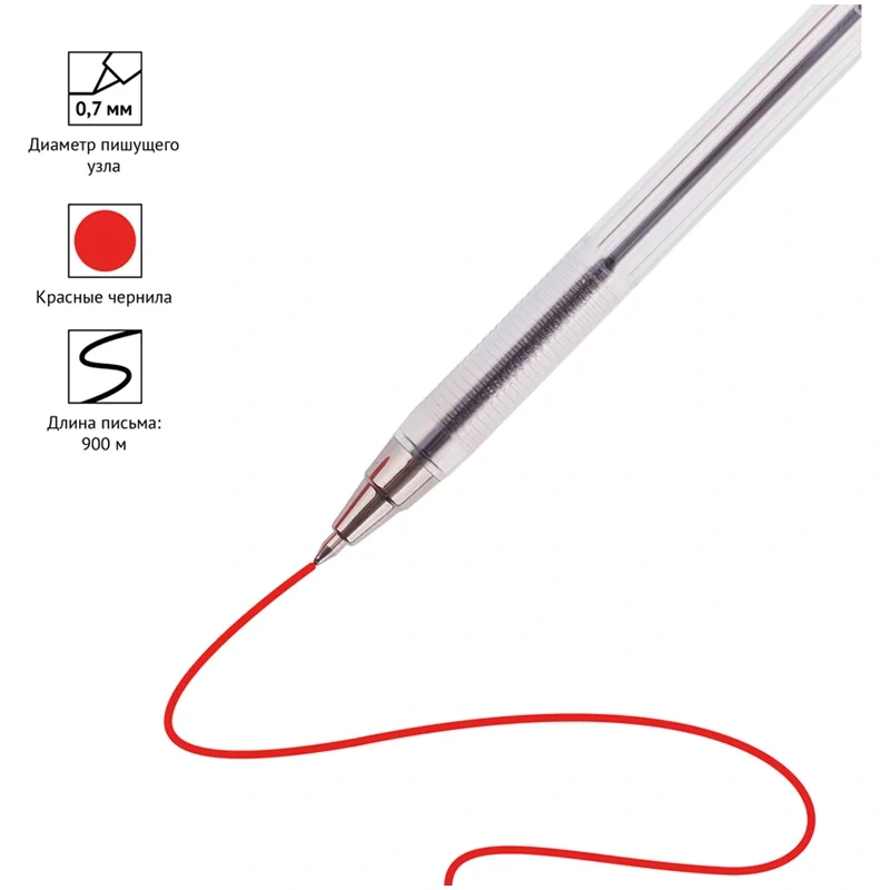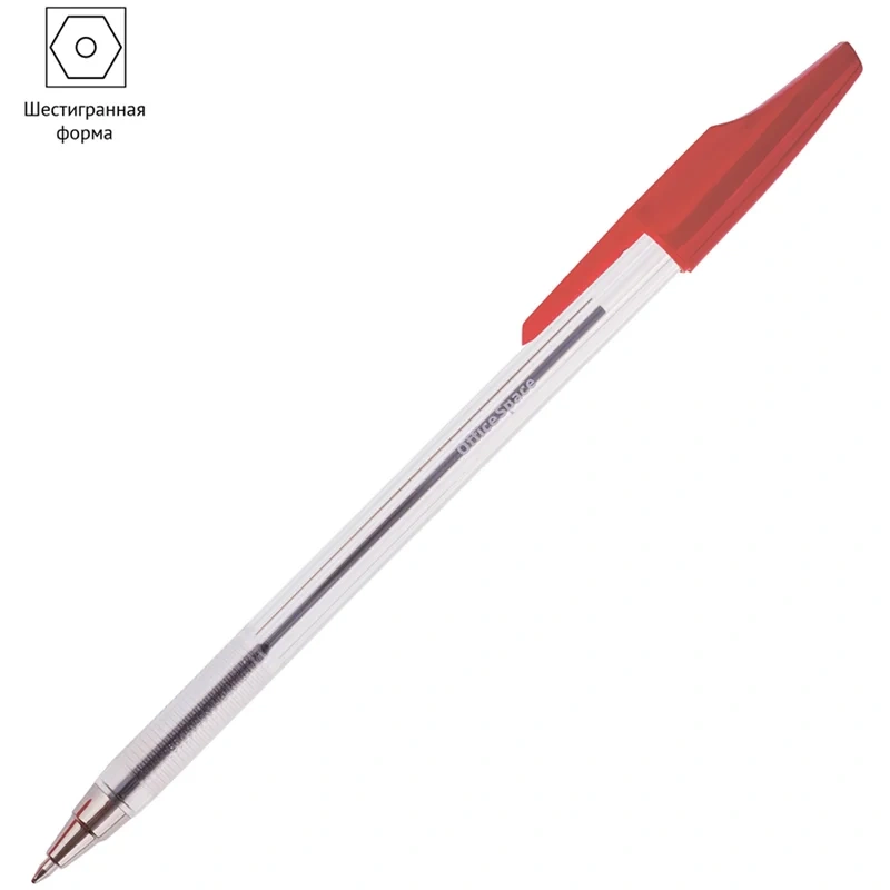 Ручка шариковая Officespace красная, 0.7мм, прозрачный корпус, одноразовая