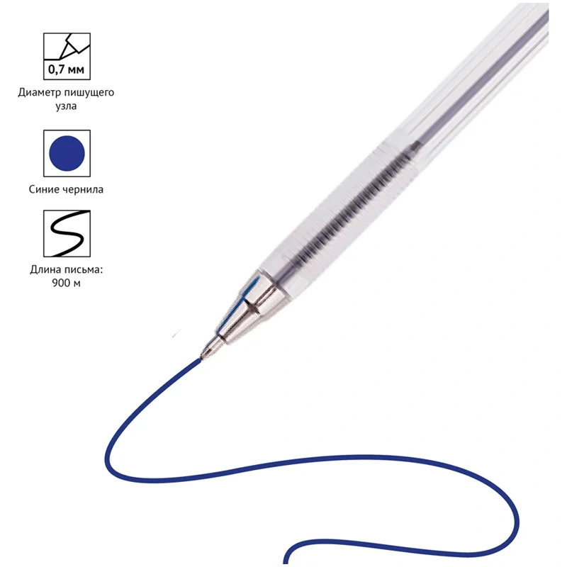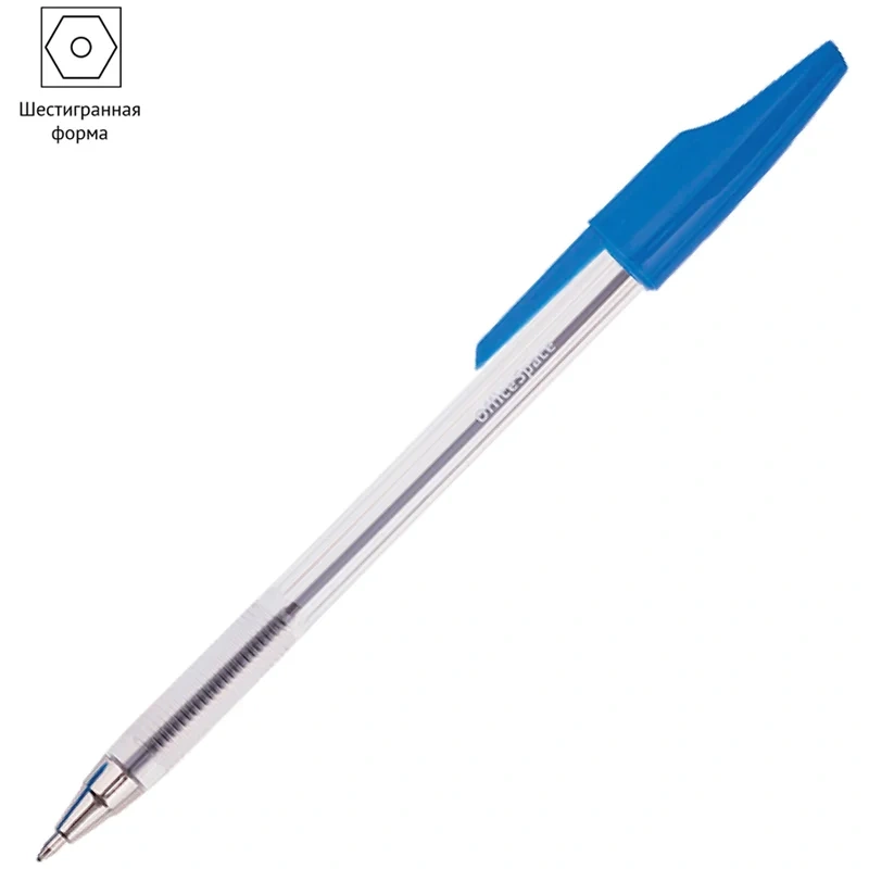 Ручка шариковая Officespace синяя, 0.7мм, прозрачный корпус, одноразовая