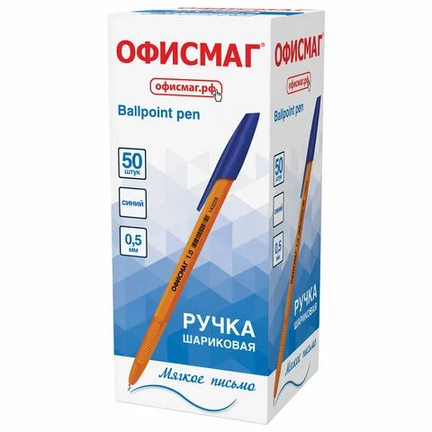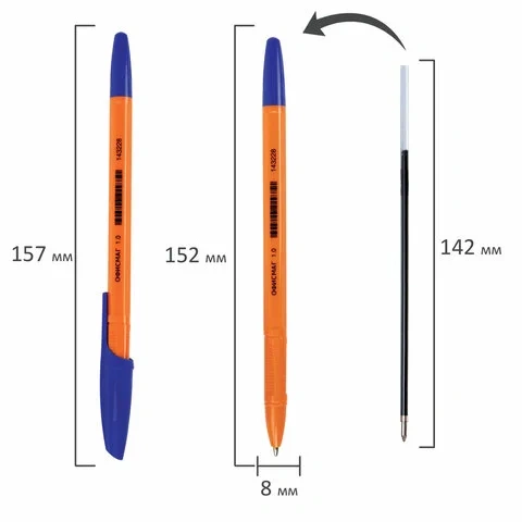 Ручка шариковая ОФИСМАГ 'X-333 Orange', СИНЯЯ, корпус оранжевый, узел 1 мм, линия письма 0,5 мм, 143