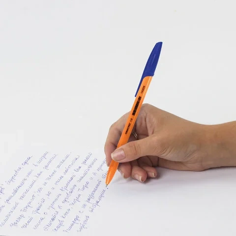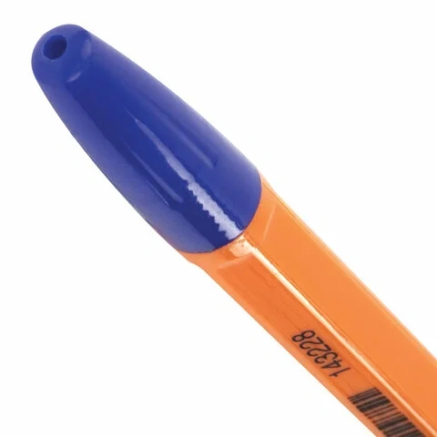 Яркая шариковая ручка с оранжевым корпусом, вентилируемым колпачком и удобной трёхгранной зоной захвата с рифлением, препятствующим скольжению пальцев при письме. Снабжена сменным стержнем 142 мм, что позволяет увеличить срок службы. Диаметр пишущего узла 1 мм создает оптимальную линию письма 0,5 мм. Цвет чернил - синий.