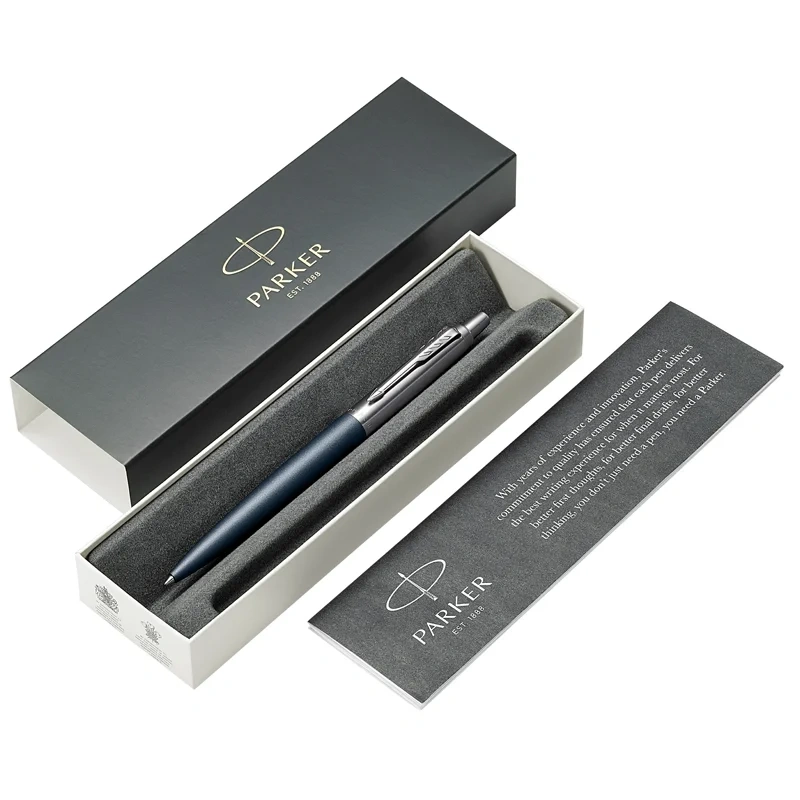 Легендарная ручка Jotter в новом утолщенном корпусе. Классический дизайн ручки был модифицирован, чтобы удовлетворить предпочтения тех, кому удобнее писать ручками большего размера. Длина, диаметр, вес были увеличены на 7%. При этом традиционна форма, зажим-стрела и фирменный 'клик' остаются неизменными. ВНИМАНИЕ! С марта 2020г. подарочные коробки ручек ТМ Parker прекратили комплектоваться лифлетами (листовками с гарантийным талоном).