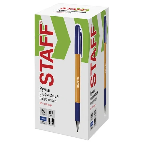 Ручка шариковая с грипом STAFF 'Basic BP-14 Orange', СИНЯЯ, узел 0,7 мм, линия письма 0,35 мм, 14374