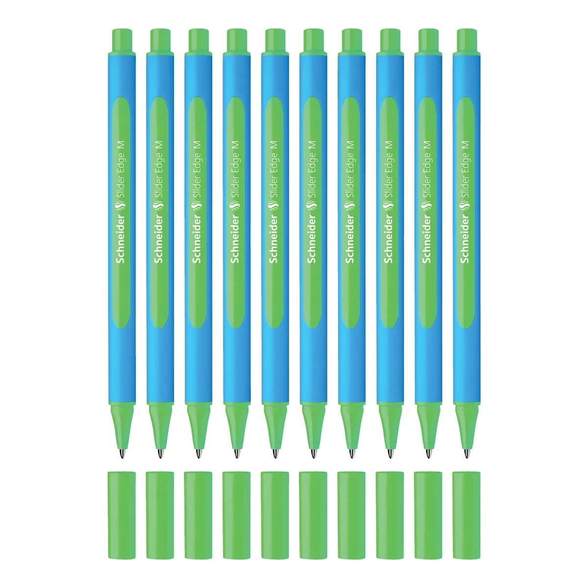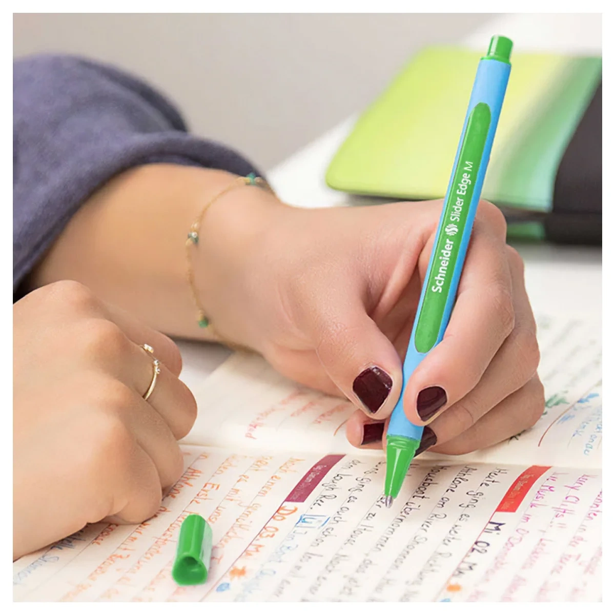 Шариковая ручка Schneider Slider Edge M с эргономичным трехгранным прорезиненным корпусом. Диаметр пишущего узла ручки составляет 1,0 мм, толщина линии письма – 0,5 мм. Длина письма может достигать 2500 метров! Ручки зелёного цвета упакованы в картонную коробку в колличестве 10 штук. Ручка изготовлена с использованием запатентованной технологии Viscoglide® для необычайно легкого и скользящего письма. Цвет элементов корпуса соответствует цвету чернил. Письменные принадлежности Schneider разрабатываются и производятся только в Германии.