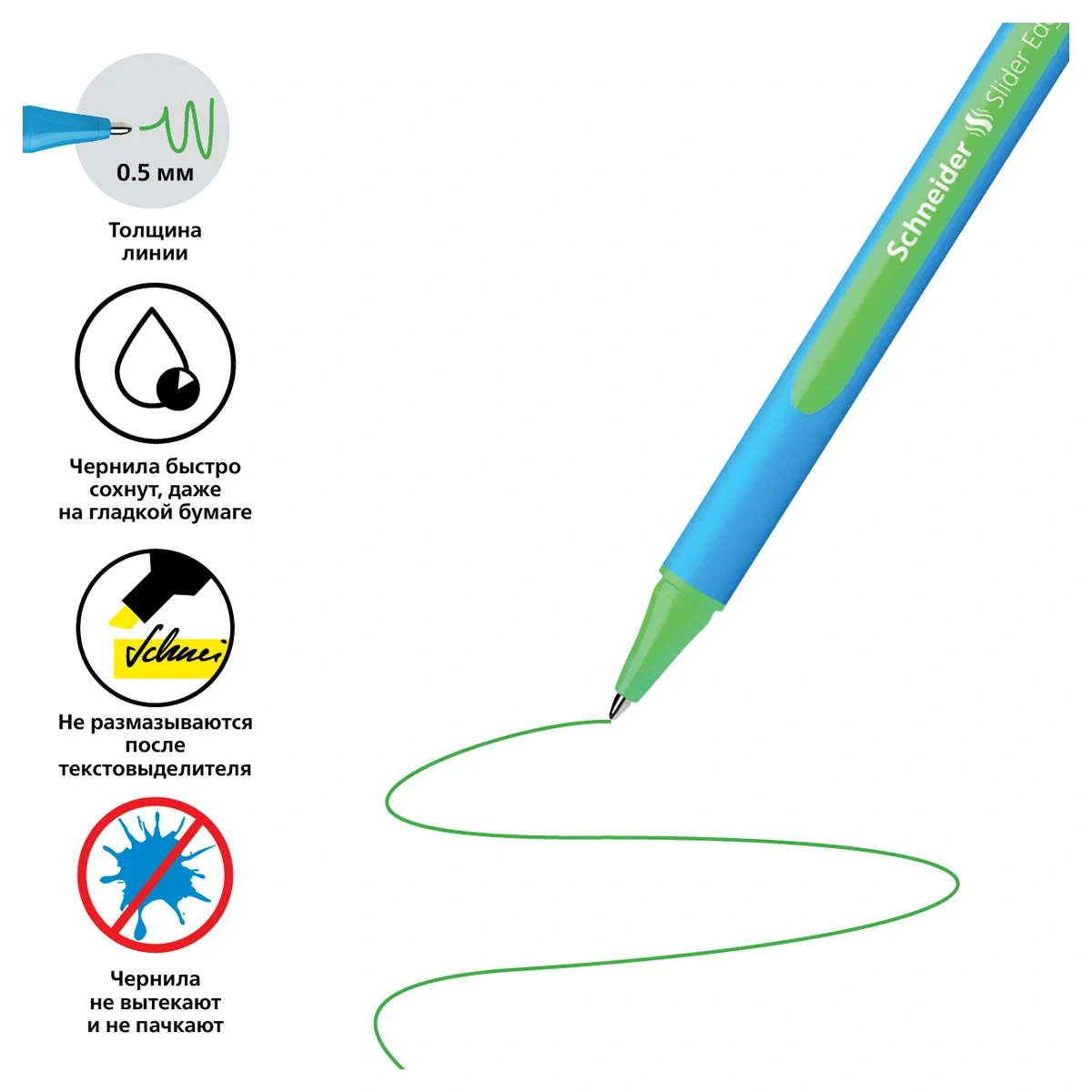 Ручка шариковая Schneider Slider Edge M зеленая, 0.5мм, одноразовая