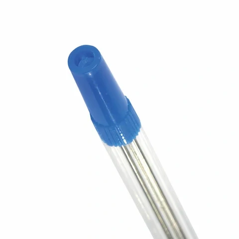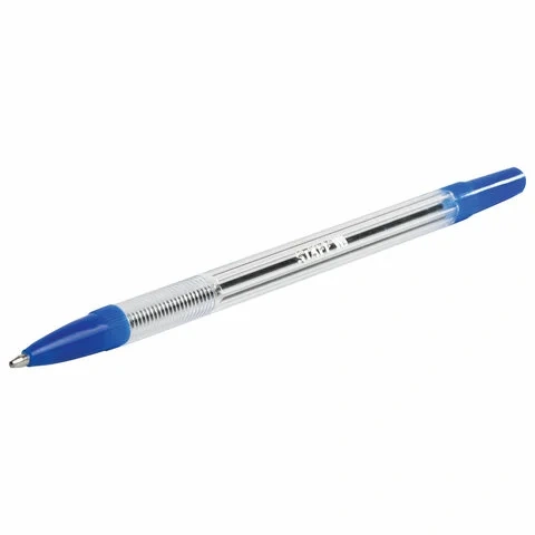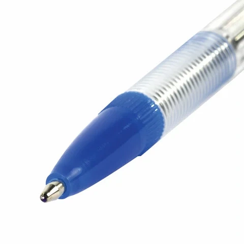 Шариковая ручка с классическим прозрачным корпусом, вентилируемым колпачком и удобной зоной захвата с рифлением, препятствующим скольжению пальцев при письме. Ручка снабжена сменным стержнем длиной 141 мм, что позволяет увеличить срок службы. Диаметр пишущего узла 1,0 мм создает линию письма, равную 0,5 мм. Цвет чернил - синий.