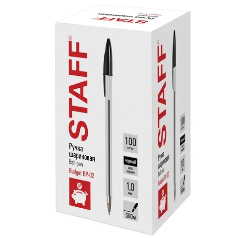 Шариковая ручка Staff Basic Budget BP-02 черная, 0.5мм, прозрачный корпус