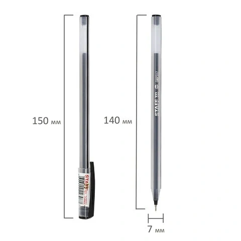 Шариковая ручка Staff Basic черная, 0.3мм, прозрачный корпус, одноразовая