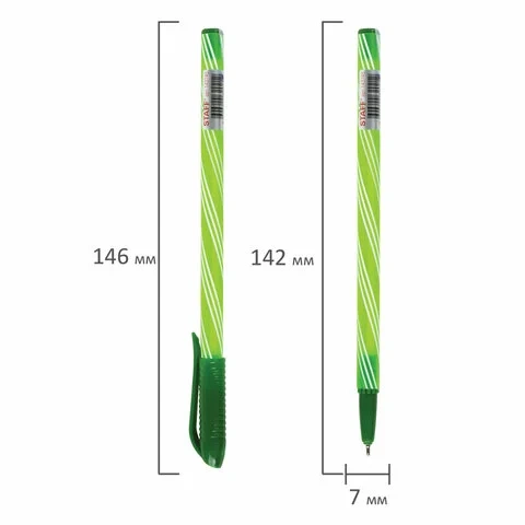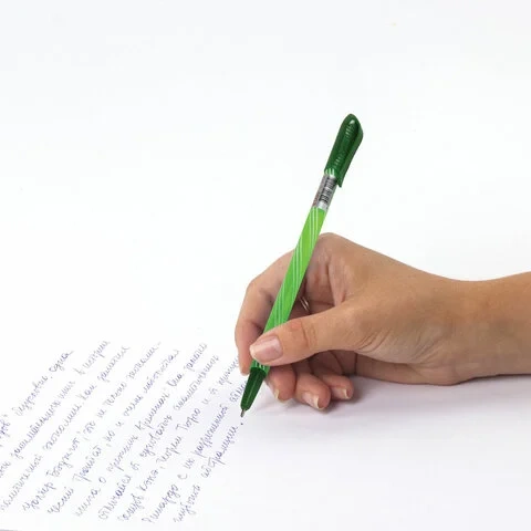 Шариковая ручка с ярким круглым корпусом синего, зеленого, розового и желтого цветов. Диаметр игольчатого пишущего узла, равный 0,7 мм, создает тонкую четкую линию письма, равную 0,35 мм. Цвет чернил - синий.