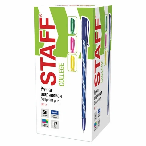 Шариковая ручка Staff College BP-12 синяя, 0.35мм, корпус ассорти, одноразовая