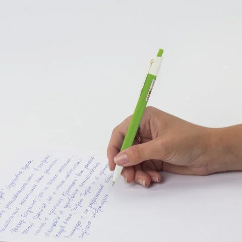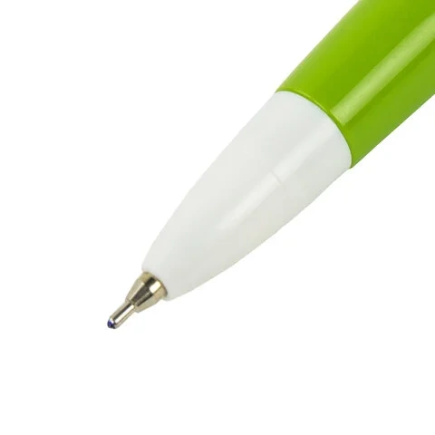 Шариковая масляная автоматическая ручка имеет шестигранный корпус из ассорти цветов. Сменный стержень длиной 107 мм с игольчатым наконечником. Диаметр пишущего узла 0,7 мм создает тонкую линию письма 0,35 мм. Цвет чернил - синий.