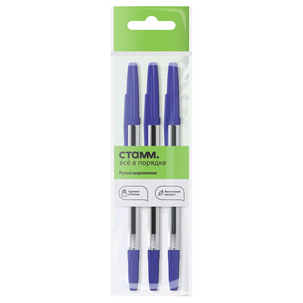 Набор шариковых ручек Стамм Оптима синие, 0.7мм, 3шт/уп