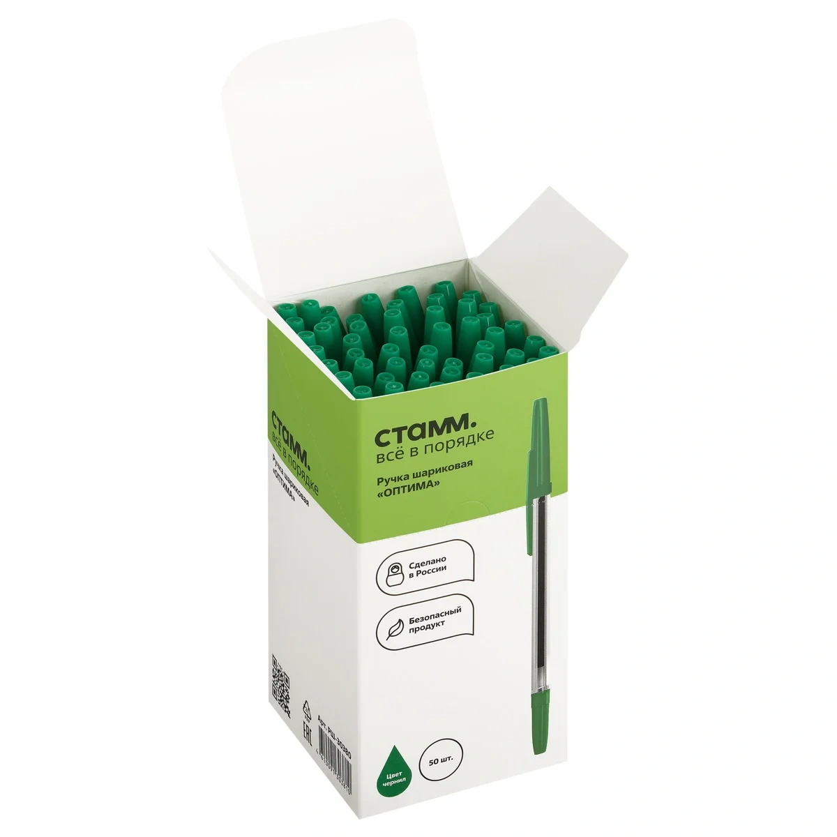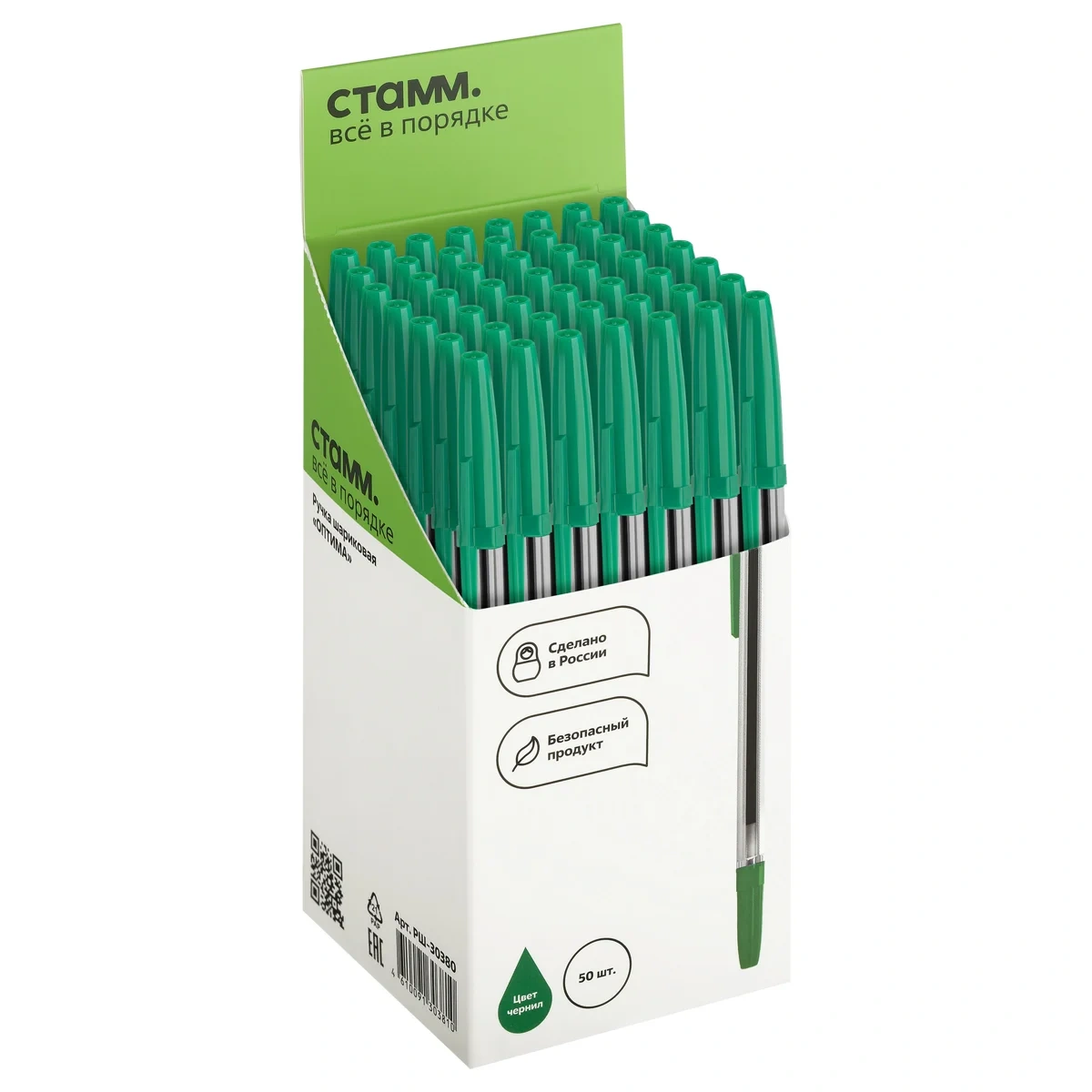 Шариковая ручка «СТАММ» серии «Оптима» с вентилируемым колпачком благодаря классической шестигранной форме корпуса комфортно лежит в руке. Диаметр пишущего узла – 1 мм, толщина линии письма – 0,7 мм. Длина стержня – 133 мм. Износостойкий наконечник и зелёные чернила на масляной основе обеспечивают мягкое, ровное и комфортное письмо. Изделие изготовлено из качественных материалов, и идеально сочетает в себе функциональность и современный дизайн. Ручки поставляются в картонной коробке по 50 штук.