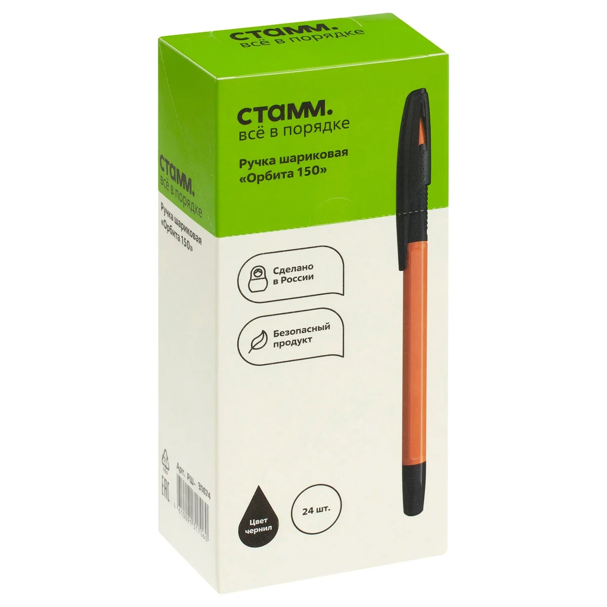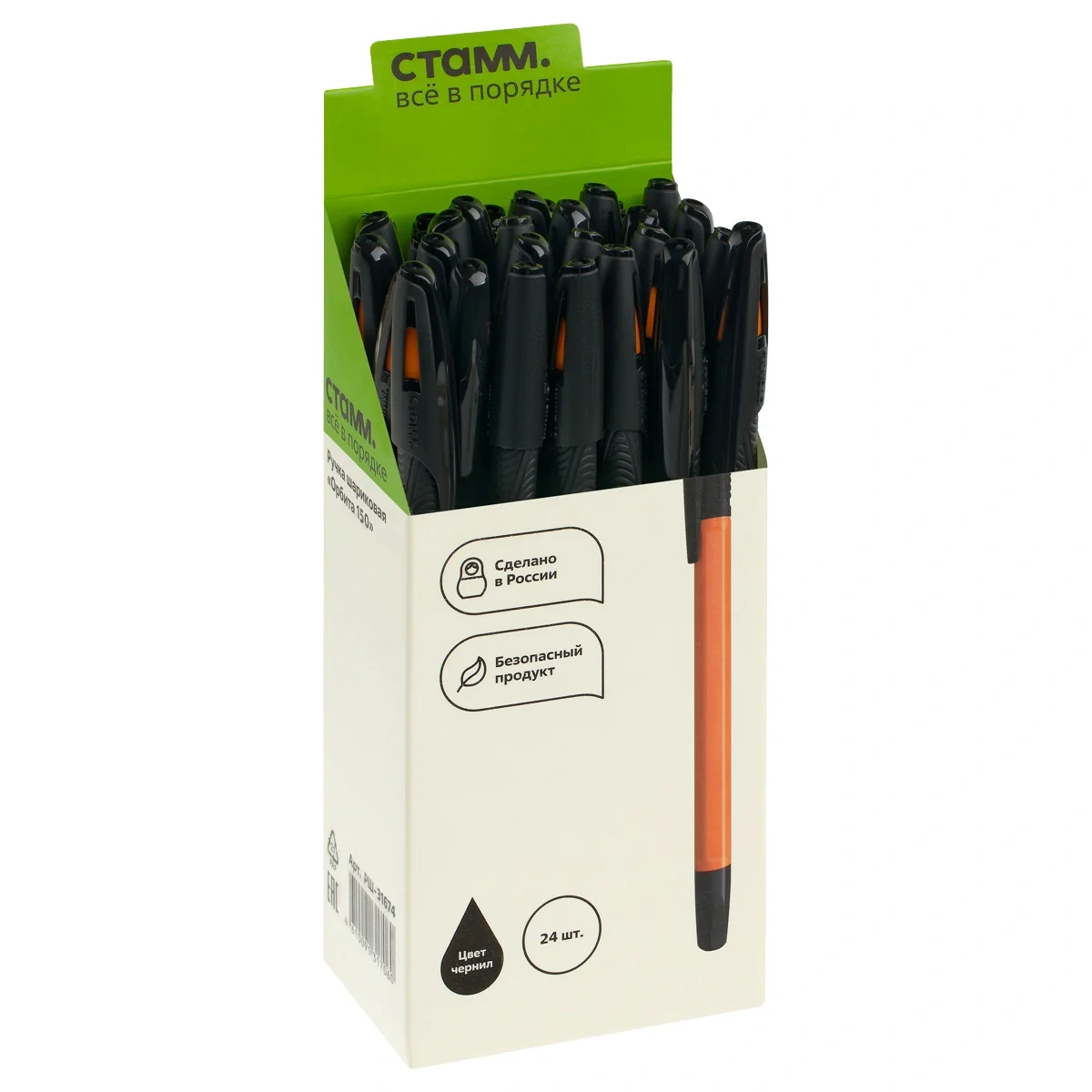 Шариковая ручка СТАММ «Орбита 150» изготовлена из качественных материалов, сочетает в себе функциональность и современный дизайн. Благодаря классической шестигранной форме корпуса ручка комфортно лежит в руке. Эргономичный резиновый грип с рифлением препятствует скольжению пальцев, что делает её использование максимально комфортным. Ручка оснащена вентилируемым колпачком, который обеспечивает дополнительную безопасность при использовании детьми. Диаметр пишущего узла составляет 0,7 мм, толщина линии письма — 0,5 мм. Длина стержня — 142 мм. Износостойкий наконечник и чернила на масляной основе обеспечивают мягкое, ровное и комфортное письмо. Ручки поставляются в картонной коробке по 24 штуки.
