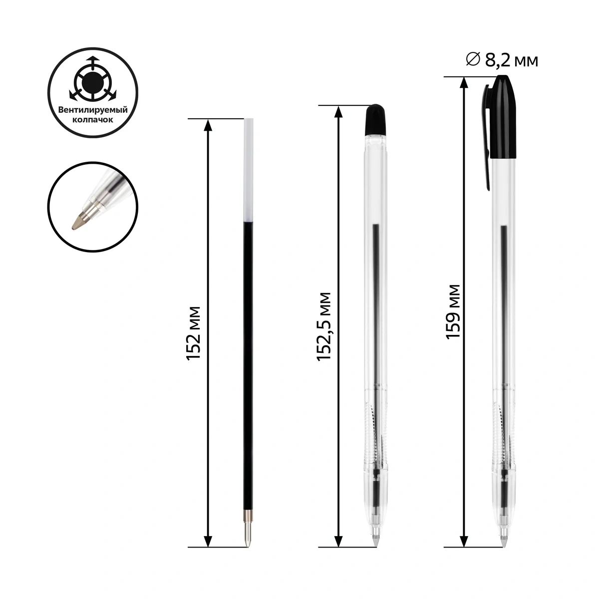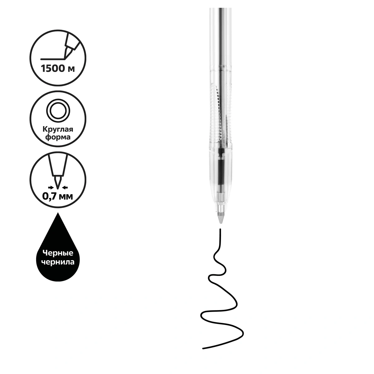 Ручка шариковая Стамм VeGa черная, 0.7мм, прозрачный корпус, РШ108