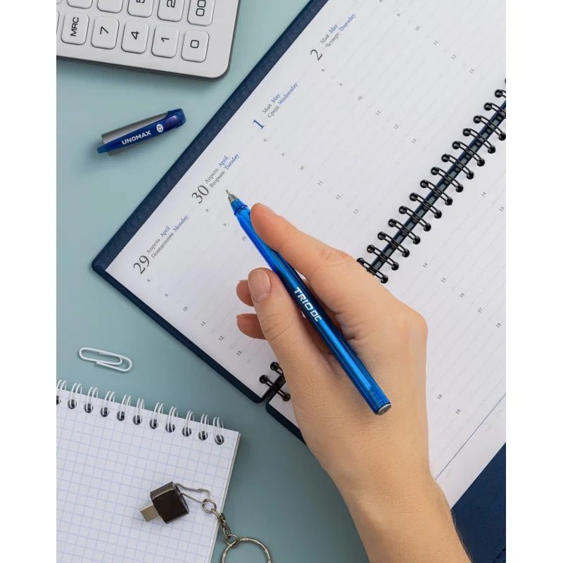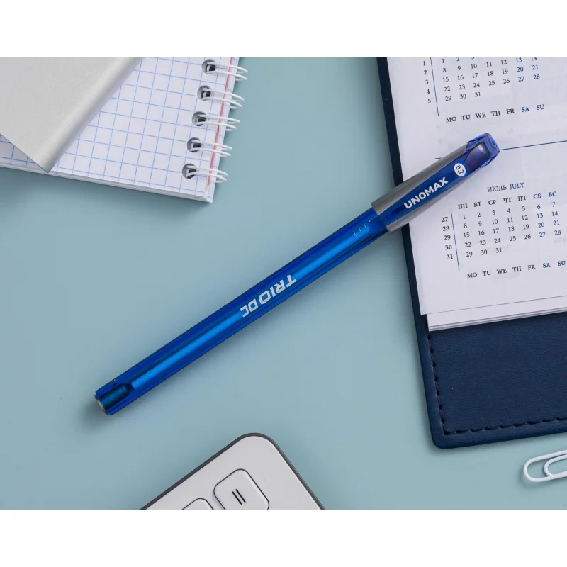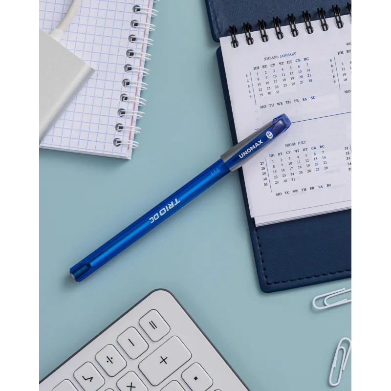 Одноразовая шариковая ручка Unomax (Unimax) Trio с масляными чернилами синего цвета. Не надо расписывать. Прочный клип. Удобная трехгранная форма корпуса. Стильный тонированный корпус в цвет чернил. Игольчатый пишущий узел. Толщина линии письма — 0,5 мм. Диаметр шарика — 0,7 мм. Ручка, созданная по революционным технологиям с использованием материалов высшего качества, обеспечивает мягкое и качественное письмо за счет использования чернил низкой вязкости Visco Fluid Ink на масляной основе. Сочетание уникальных технологий производства чернил и пишущего узла позволяет писать на 20% дольше без пропусков и помарок при минимальном давлении на ручку. Ручка также предназначена для левшей.