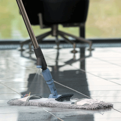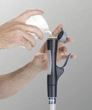 Универсальная ручка со встроенным резервуаром для быстрой точечной уборки пола спрей-методом.