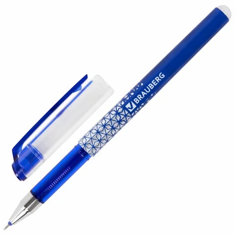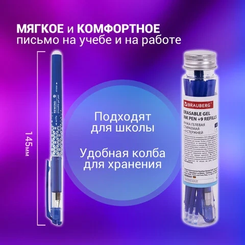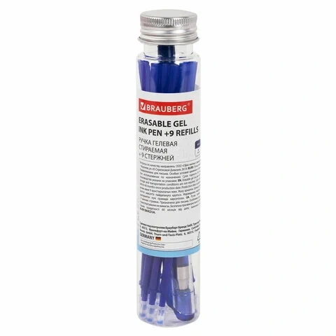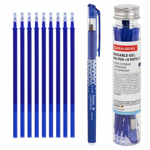 Гелевая ручка стираемая Brauberg синяя, 0.5мм, синий корпус, 9 стержней