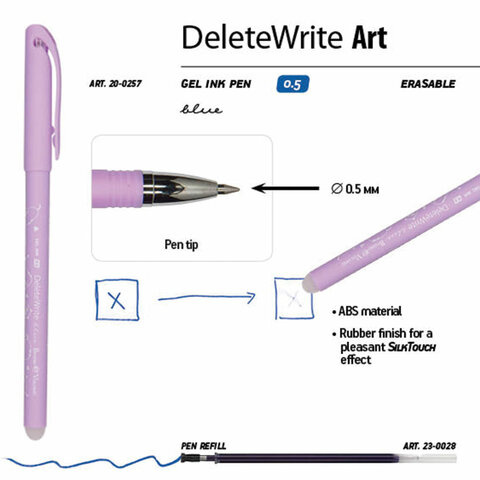 Ручка от BRUNO VISCONTI со стираемыми чернилами из серии DELETEWRITE. При трении, под воздействием тепла, чернила полностью стираются, не нарушая целостность листа. Поставляется в нескольких вариантах цвета корпуса (без возможности выбора).