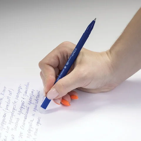 Ручка имеет круглый прорезиненный корпус синего цвета и стандартный наконечник. Длина сменного стержня составляет 130 мм. Диаметр пишущего узла, равный 0,5 мм, создает линию письма, равную 0,35 мм. Возможность многократного стирания и повторного письма. Цвет чернил – синий. В набор входит: 1 ручка и 5 сменных стираемых стержней.