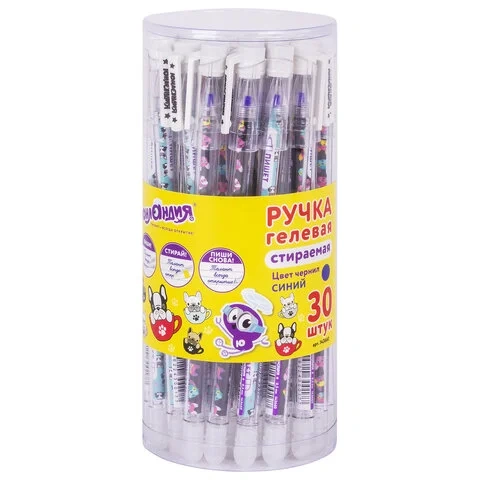 Гелевая ручка стираемая Юнландия Щенята синяя, 0.35мм, корпус ассорти