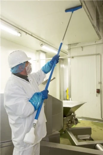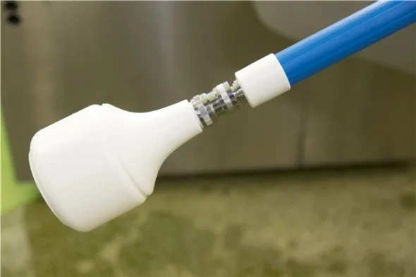 Раздвигаясь, может достигать в высоту 4,3 м. Вода проходит по каналу внутри ручки и поступает в щетку (например, арт. 7067,7043) или сгон для сбора конденсата с труб и потолков арт.7716. Снабжена быстроразъемным соединением для быстрого присоединения шланга или бутыли.
