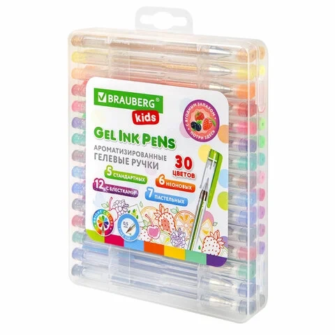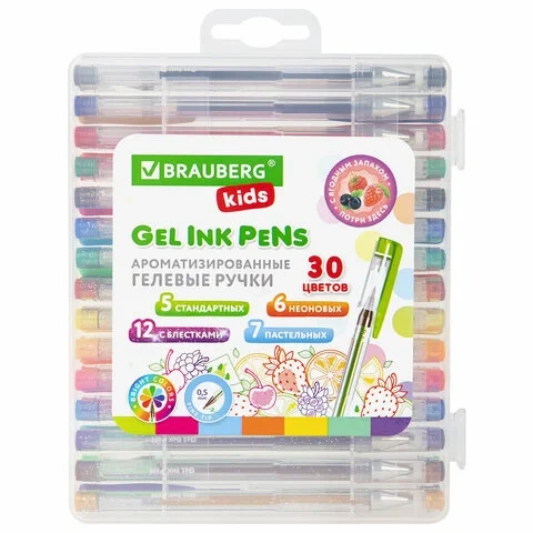 Набор гелевых ручек Brauberg Fruits 30 цветов, 0.5мм, ароматизированные