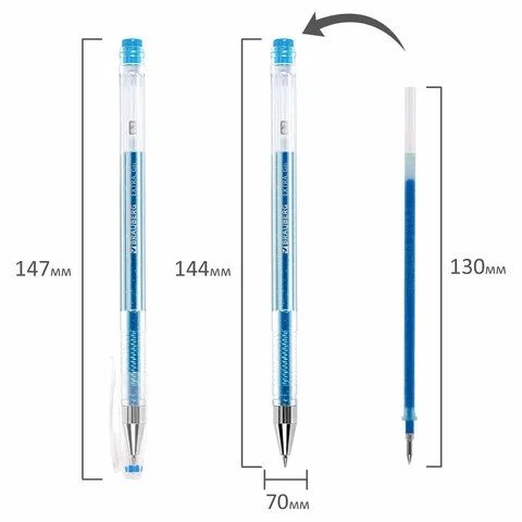 Гелевые ручки имеют шестигранный прозрачный корпус с рифленой поверхностью в зоне захвата. Детали ручек выполнены в цвет чернил. Сменный стержень длиной 130 мм со стандартным наконечником позволит использовать ручки максимально долго. Диаметр пишущего узла, равный 0,5 мм, создает линию письма, равную 0,35 мм. Японские чернила MIKUNI с насыщенным пигментом обеспечивают непревзойденное качество письма. Цвет чернил - синий, красный, фиолетовый, зеленый, желтый, серебристый.