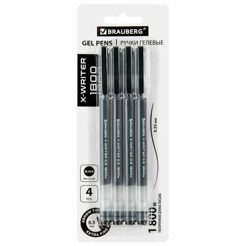 Набор гелевых ручек Brauberg X-Writer черные, 0.4мм, увеличенная длина, 4шт/уп