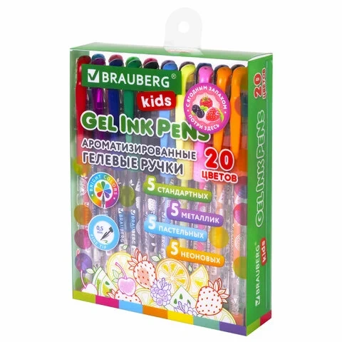 Набор гелевых ручек Brauberg Fruits 20 цветов, 0.5мм, ароматизированные