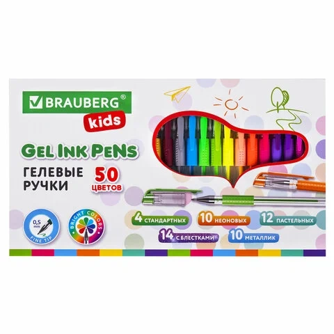 Набор гелевых ручек Brauberg Kids 50 цветов, 0.5мм