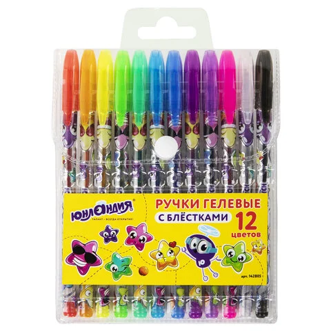 Набор гелевых ручек Юнландия 12 цветов, с блёстками, 0.5мм