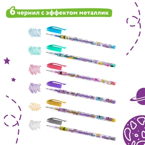 Набор гелевых ручек Юнландия 6 цветов, металлик, 0.5мм