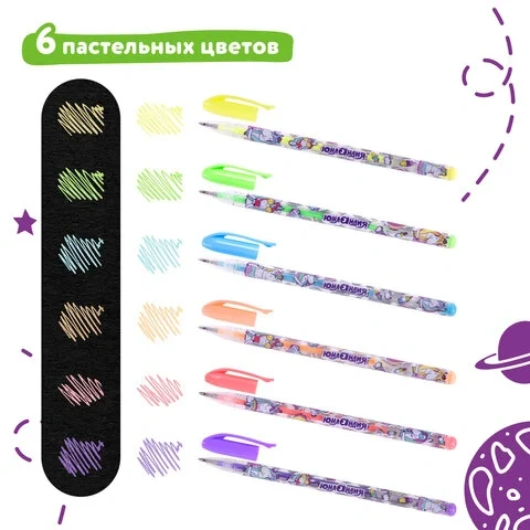 Набор гелевых ручек Юнландия 6 цветов, пастельные, 0.5мм