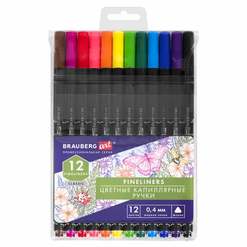 Набор ручек капиллярных Brauberg Art Classic 12 цветов, 0.4мм
