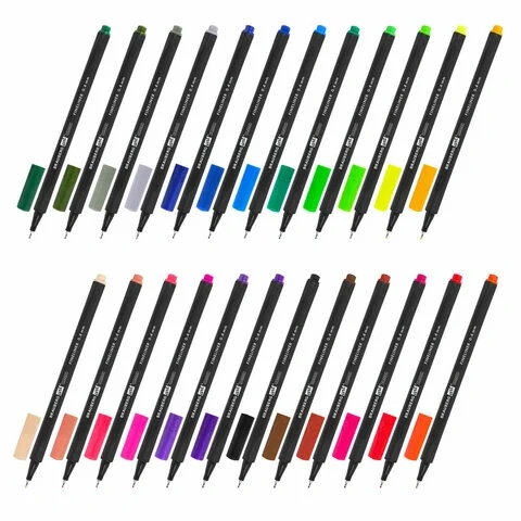 Набор капиллярных ручек BRAUBERG ART 'Classic' состоит из 24 ярких цветов: красный, коричневый, синий, черный, желтый, лимонный, зеленый, розовый, голубой, сиреневый, фиолетовый, салатовый, оранжевый, светло-зеленый, темно-зеленый, малахитовый, бордовый, темно-синий, серый, бежевый, светло-бежевый, шоколадный, оливковый, светло-фиолетовый.