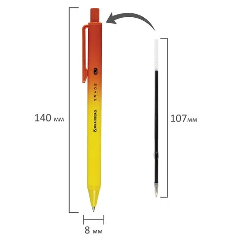 Стандартный пишущий узел с диаметром 0,7 мм создает линию письма шириной 0,35 мм. Ручки оснащены сменным стержнем длиной 107 мм, что обеспечивает удобство использования и замену чернил.