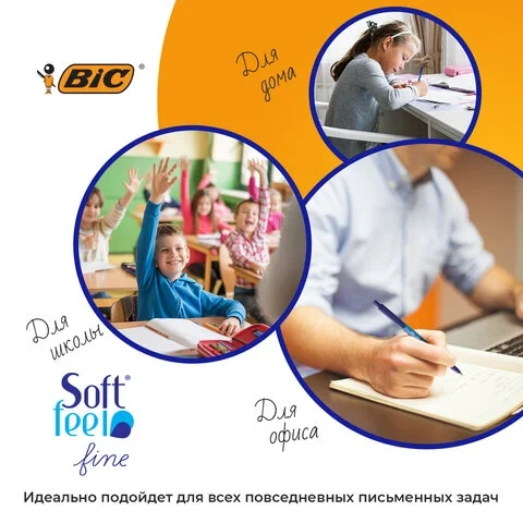 Набор шариковых ручек Bic Soft Feel Fine синие, 0.3мм, 3шт/уп, автоматические